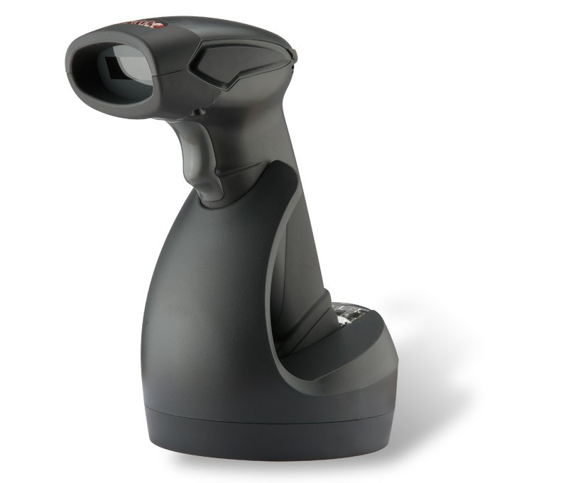 Diodowy skaner kodów kreskowych Zebex Z-3190 BT typu linear imager, bezprzewodowy, odczyt kodu automatyczny na podstawce lub po naciśnięciu przycisku, zasięg radiowy do 75 m.